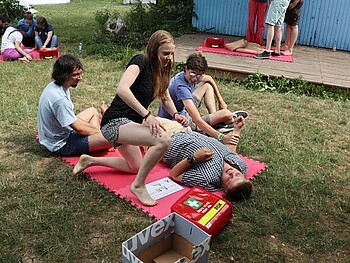 Du lernst in kritischen Situationen die richtigen Erste-Hilfe-Maßnahmen zu ergreifen. Das Seminar vermittelt dir Wissen, wie du in Erste-Hilfe-Situationen in der Gruppe ruhig, schnell und angemessen reagieren kannst. Es werden verschiedene typische Unfall- und Verletzungssituationen praxisnah und an Freizeiten angepasst eingeübt und besprochen. Dieses Seminar umfasst die üblichen 9 UE Erste-Hilfe-Maßnahmen und wird vom DRK Großbettlingen durchgeführt.