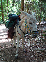 Bei einer mehrtägigen Wanderung durch den Spessart mit vier Zwergeseln wollen wir euch praxisnah alles vermitteln, was ihr für das Trekken mit Eseln wissen solltet: Angefangen beim Halfter aufziehen und Hufe auskratzen über das richtige Befüllen von Packtaschen und Aufsatteln bis hin zum Aufbauen von einem Elektrozaun und dem Versorgen von kleineren Schürf- und Scheuerwunden bei den Tieren. Neben diesen und vielen weiteren praktischen Dingen werdet ihr auch einen Einblick in die Denk- und Verhaltensweise von Eseln erhalten: Esel sind nicht stur - wir Menschen verstehen sie nur meist nicht richtig. Nach diesem Seminar werdet ihr wissen, was Esel so alles als gefährlich erachten, wie ihr einen Esel überreden könnt mit euch ein Hindernis zu überwinden und was dahinter steckt, wenn ein Esel plötzlich keinen weiteren Schritt mehr tun möchte.