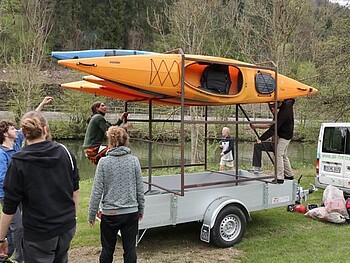 Gemeinsam üben wir die Grundbegriffe des Kajakfahrens. Wir lernen Gefahren und Risiken des fließenden Elements genauso kennen wie den Umgang mit einer Kanugruppe auf dem Wasser. Außerdem bereiten wir uns auf kleinere Pannen auf dem Wasser und mit dem Kajakanhänger vor.