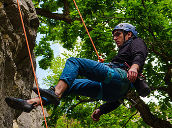 Du hast Lust auf ein actionreiches Wochenende in der Natur? Dann komm mit uns zum Felsklettern rund um Bad Urach! Ob du noch nie am Fels geklettert bist oder schon einige Erfahrung hast - hier kannst du die Basics des Felskletterns lernen oder deine Fähigkeiten weiter ausbauen, ganz ohne Druck, aber mit viel Spaß und Unterstützung. Gemeinsam werden wir die Handhabung von Sicherungsgeräten üben und die Sicherheitsausrüstung fürs Klettern kennenlernen. Je nach Erfahrungsstand und Interesse können wir Abseilübungen oder Übungen zum körperdynamischen Sichern machen.