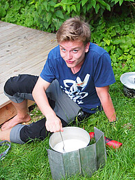 Auf unserer „Learning by doing – Tour“ durch die Vogesen beschäftigen wir uns mit der BDP-Ausrüstung für Trekking-Freizeiten, üben Zelte und Tarps aufzubauen und lernen, worauf es bei privater Ausrüstung wie Schlafsack, Isomatte, Schuhe und Rucksack ankommt. Unser Essen kochen wir auf Benzin- und Gaskochern, welche wir uns ebenfalls ganz genau anschauen.