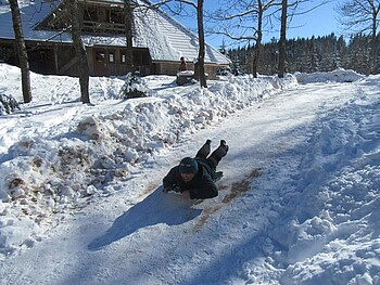 Wir kochen über dem Feuer, bauen Schneeskulpturen und Iglus, kuscheln uns nach wilden Schneeballschlachten ums Lagerfeuer, machen eine Nachtwanderung.